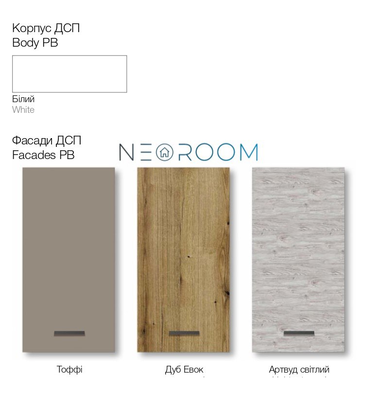 Фасади ДСП: Тоффі/Дуб Евок/Артвуд світлий.