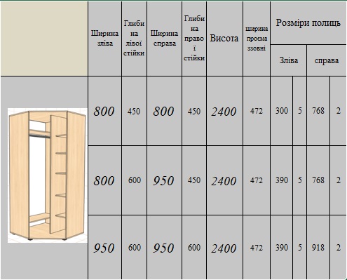 Додатково до шафи можна придбати кутове обгортання (Еркер) або блок ящиків.
